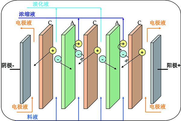 均相膜電滲析工作原理示意圖