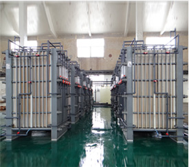 該裝置是由一定數(shù)量的膜組成的一系列結(jié)構(gòu)單元;其中每個單元有一張陰離子均相膜隔開成滲析室和擴散室,采用逆流操作,在陰離子均相膜的兩側(cè)分別通入廢酸液及接受液(自來水)時,廢酸液側(cè)的酸及其鹽的濃度遠高于水的一側(cè),根據(jù)擴散滲析原理,由于濃度梯度的存在,廢酸及其鹽類有向擴散室滲透的趨勢,但膜對陰離子具有選擇透過性,故在濃度差的作用下,廢酸側(cè)的陰離子被吸引而順利地透過膜孔道進入水的一側(cè)。同時根據(jù)電中性要求,也會夾帶陽離子,由于H+的水化半徑比較小,電荷較少;而金屬鹽水化半徑較大,電荷較多,因此H+會優(yōu)先通過膜,這樣廢液中的酸就會被分離出來。